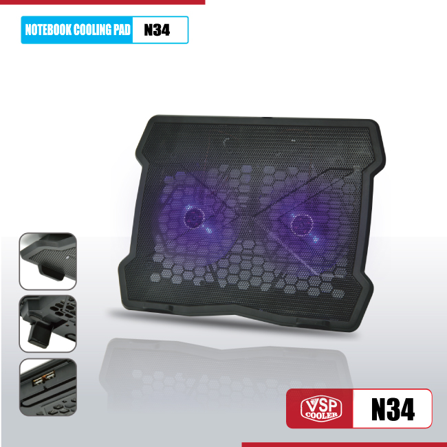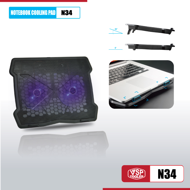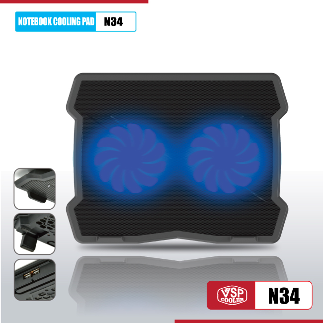 Fan tản hiệt cho laptop Notebook cooler pad N34 LED