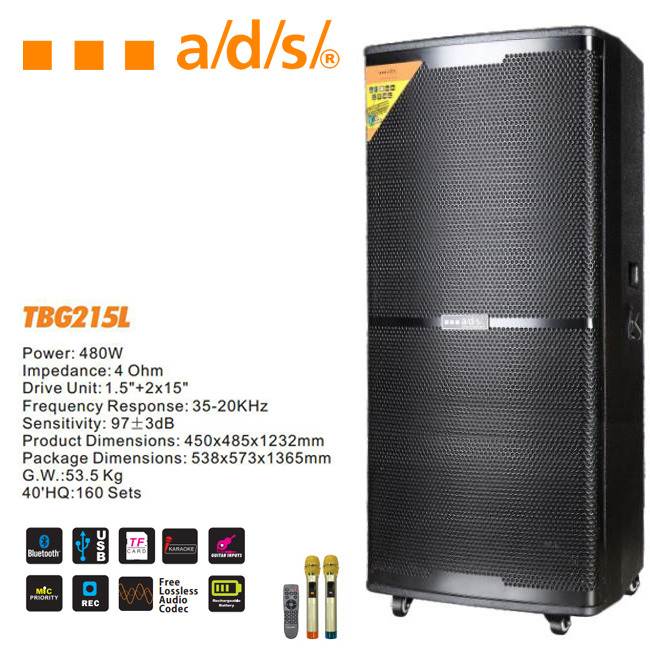 Hệ thống bo mạch của loa thuộc hàng hiện đai nhất vì được cải tiến và năng cấp liên tục, chất lượng âm thanh được đánh giá khá cao. Tích hợp loa bass 4 tấc đôi nên có công suất khủng thích hợp sử dụng trong các môi trường trong hoặc ngoài trời đem cho khách hàng trải nghiệm những buổi karaoke thú vị bên gia đình và người thân. Loa kéo di động A/D/S TBG 215L còn kèm theo 2 micro không dây sử dụng sóng UHF cực hút âm nên cho ra chất giọng rất hay và rõ.