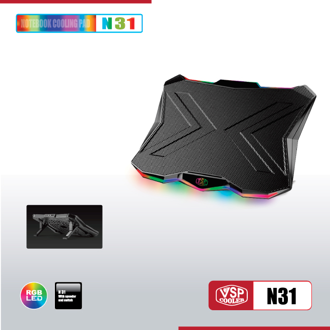 Fan tản hiệt cho laptop Notebook cooler pad N31 LED RGB